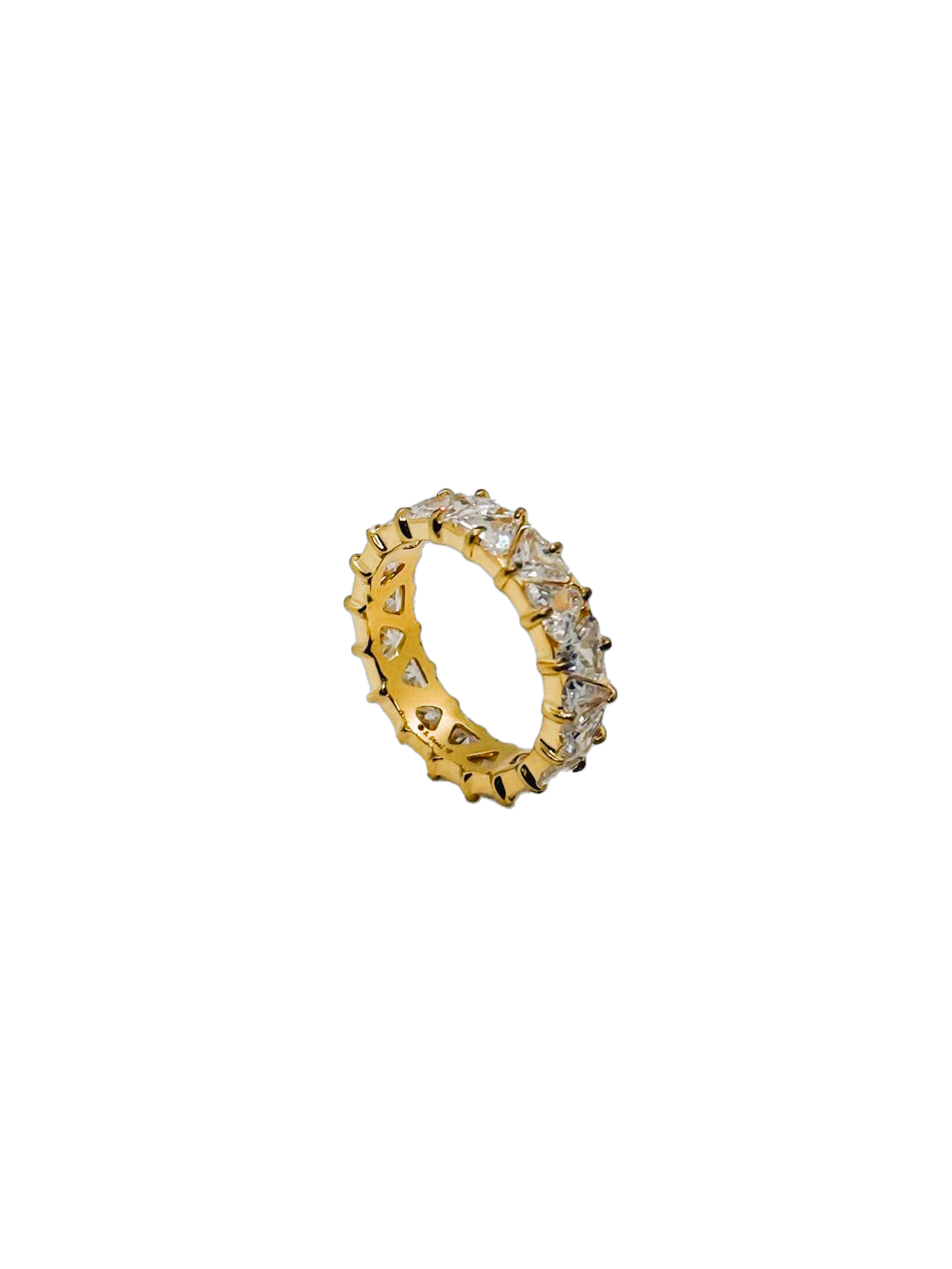 Anel com zircónias cravejadas, perfeito para um look mais arrojado.