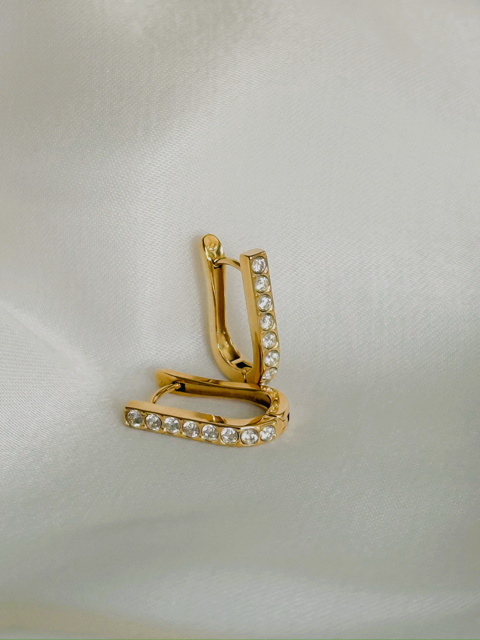 Argolas em aço inoxidável com zircônias cravejadas.