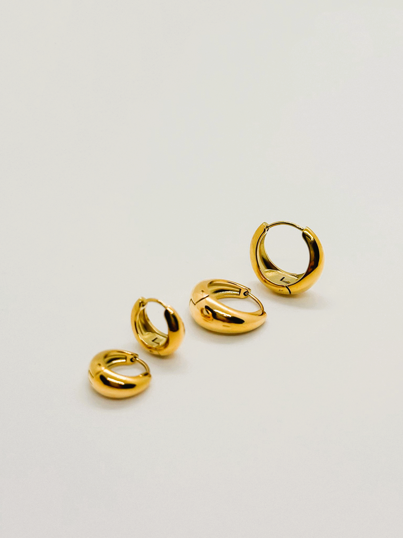 Brincos em aço inoxidável.